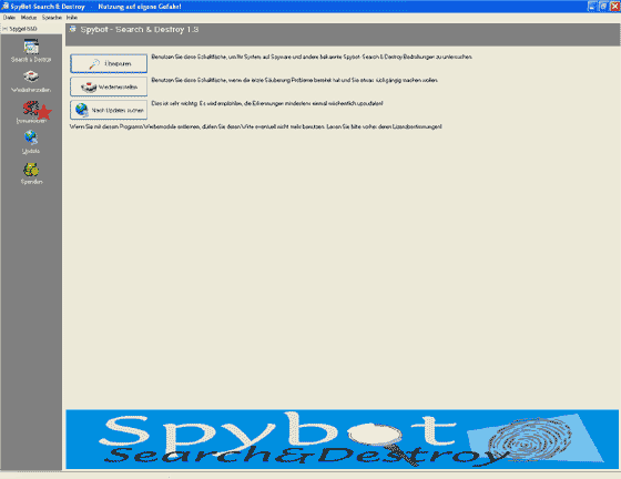 Das Programm wird gestartet. Auf der linken Seite den "Immunisieren" Knopf drücken.